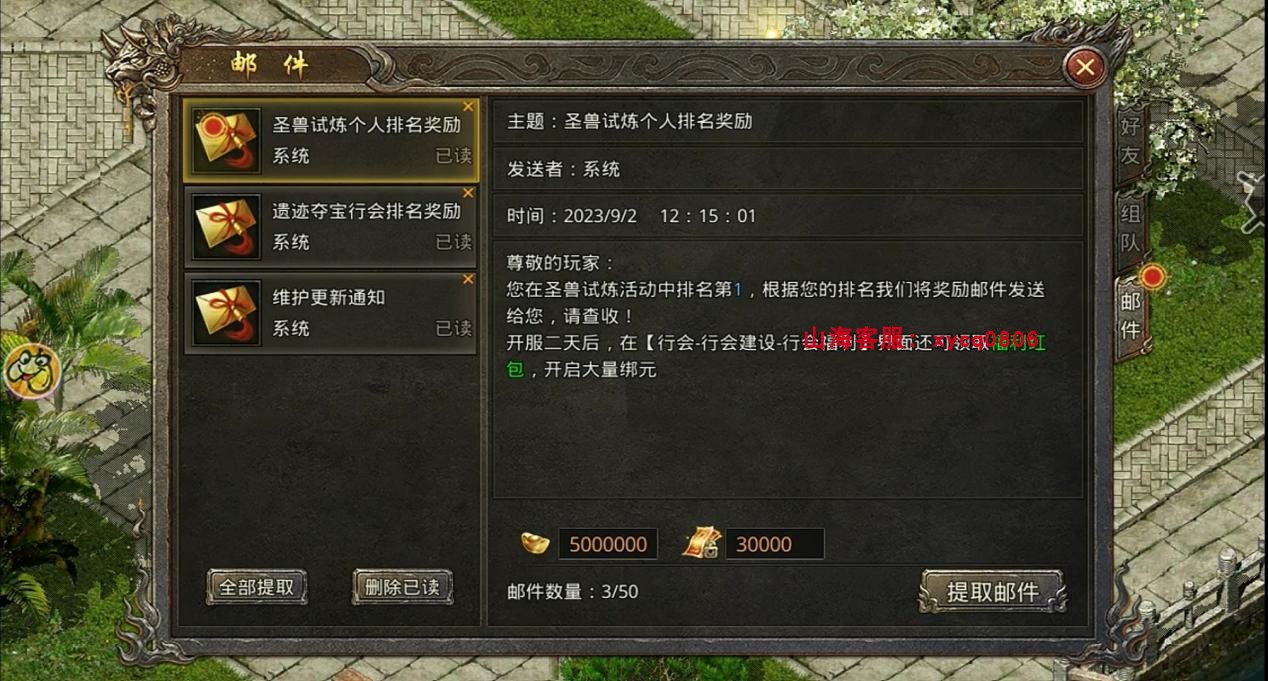 3. 圣兽试炼中可以获得元宝、灵符、护体神晶、鲲灵和神器碎片